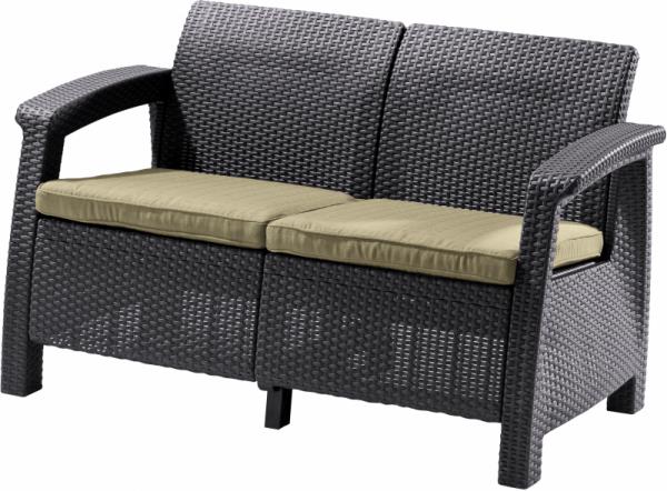 Не смотря на то, что комплект выполнен из неметаллического каркаса, мебель устойчивая и прочная и без труда выдержит большой вес. Отсутствие металлических деталей гарантирует отсутствие ржавчины и долговечность. Комплект мебели Corfu Set изготовлен из прочного погодостойкого пластика, имитирующего ротанг. Благодаря стойкому полипропилену цвета не выгорают на солнце и не бледнеют со временем. Чехлы на подушках выполнены из плотной ткани, так же устойчивой к атмосферным явлениям.