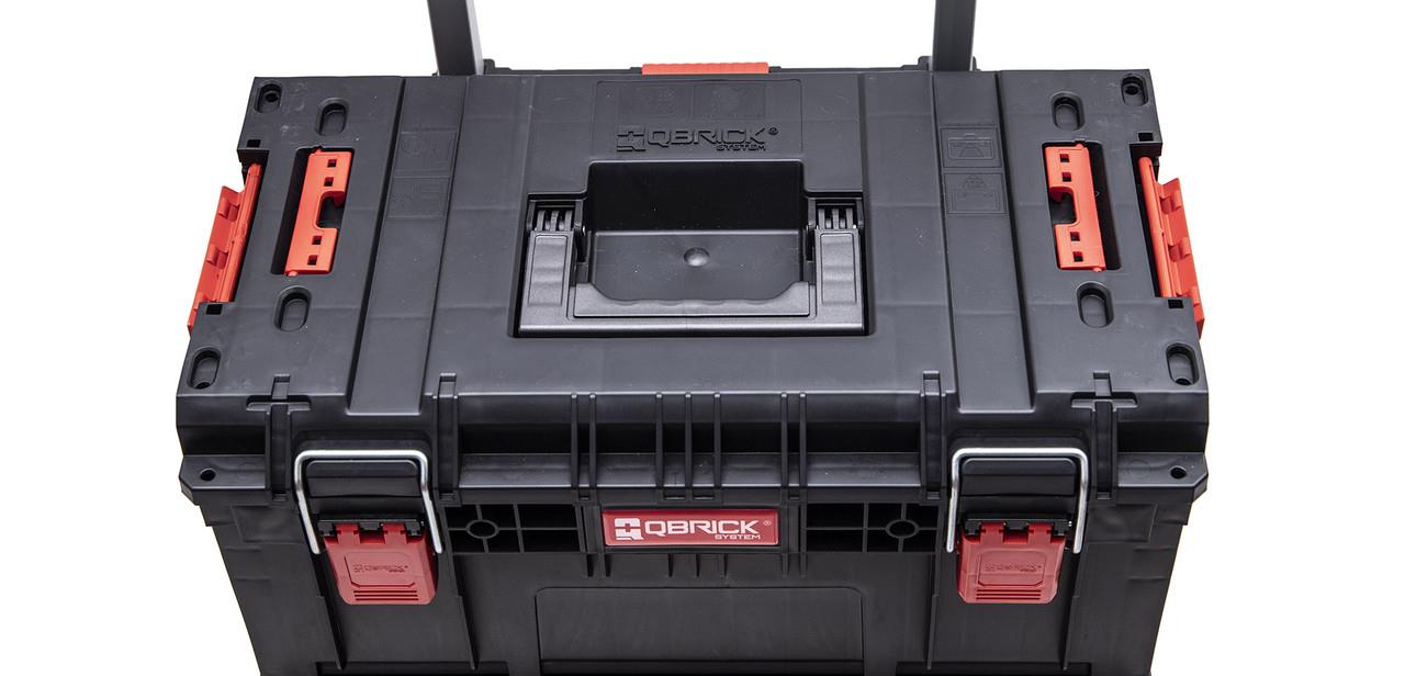 Qbrick System PRIME Cart – это передвижной ящик на колесах с телескопической алюминиевой ручкой, который также является основой новой, мультимодульной линейки Prime. Ящик имеет большие 9-дюймовые колеса, покрытые толстым слоем резины, установленные на металлической оси, которые обеспечивают отличную мобильность. Данный ящик на колесах оснащен двойной телескопической рукояткой. Кроме того, безопасность транспортируемого инструмента обеспечивается прочным крепежом и боковыми защелками из прочного полиамида. Кульминацией всего этого является водонепроницаемая и пыленепроницаемая конструкция, основанная на гибком уплотнителе, установленном в крышке. PRIME Cart имеет дополнительные разъемы для линейки PRO Размеры: внешние = 590 x 425 x 660 мм, внутренние = 465 x 247 x 304. Объем: 37,0 л. Грузоподъемность: 100 кг.