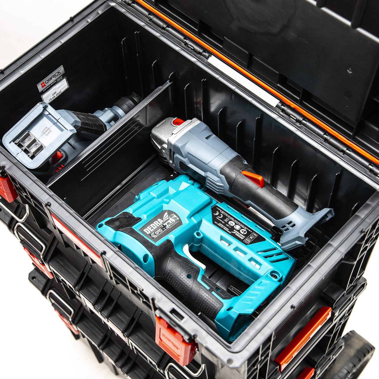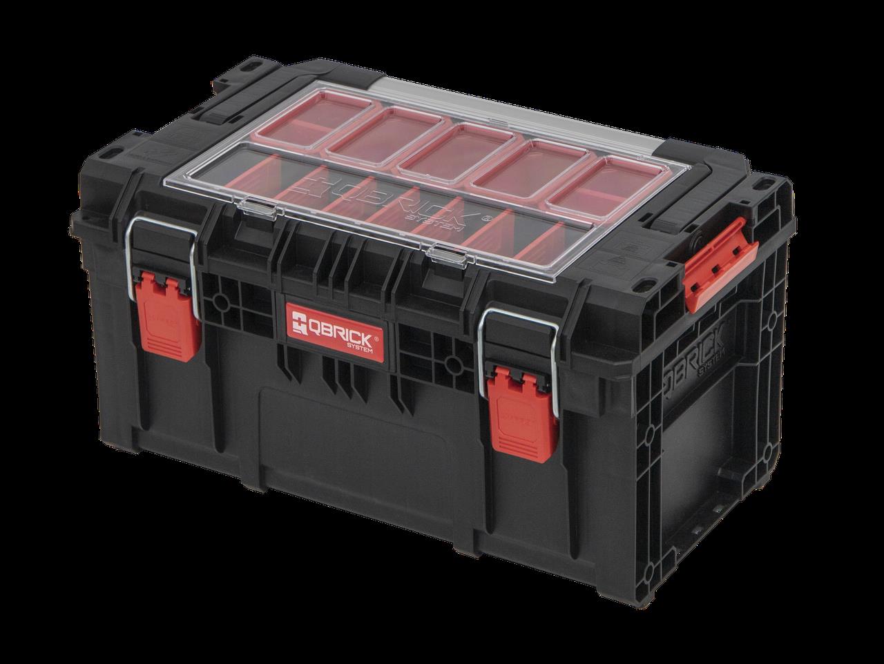 Qbrick System Prime Toolbox 250 Expert – это объёмный модульный ящик для инструментов, который уже предлагает широкий спектр оборудования в стандартной комплектации: гибкое уплотнение, встроенное в крышку, обеспечивающее высокую устойчивость к проникновению пыли и воды, 3 съемных разделителя, большой лоток, а также боковые защелки и замки изготовлены из сверхпрочного полиамида. Ящик также оснащен удобным органайзером с 5 съемными контейнерами и 7 перемещаемыми разделителями. Специальные направляющие внутри QS Prime Toolbox позволят вам разместить внутри ящика органайзеры QS PRO и TWO Multi, предназначенные для хранения принадлежностей для небольших мастерских. Размеры: внешние = 535 x 327 x 277 мм, внутренние = 467 x 252 x 203 мм. Объем: 26,0 л. Грузоподъемность: 50 кг.
