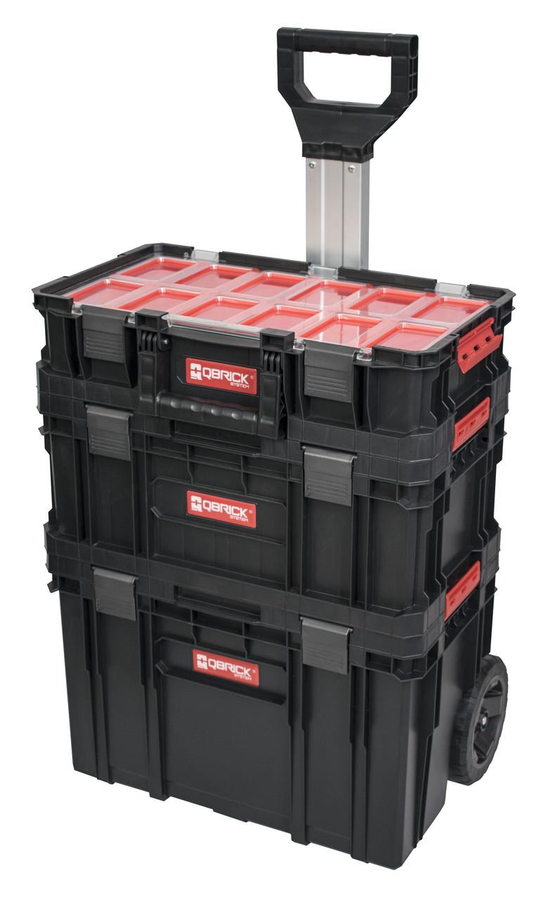 Модульный набор ящиков для инструментов, представляющий собой мобильную основу для создания персонализированных ДВУХ наборов. Прочная телескопическая ручка, металлическая ось, большие колеса с резиновым покрытием гарантируют долговечность и отличную маневренность.