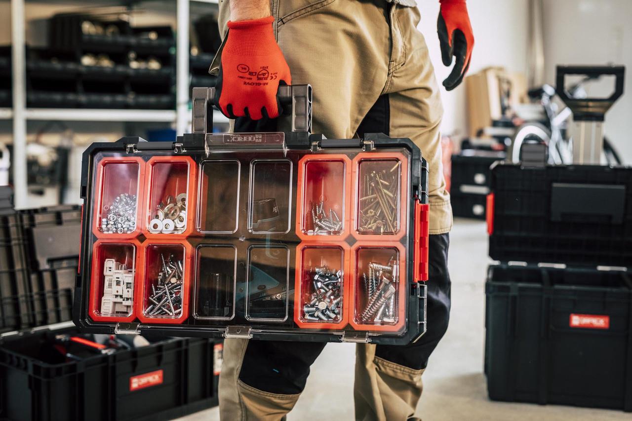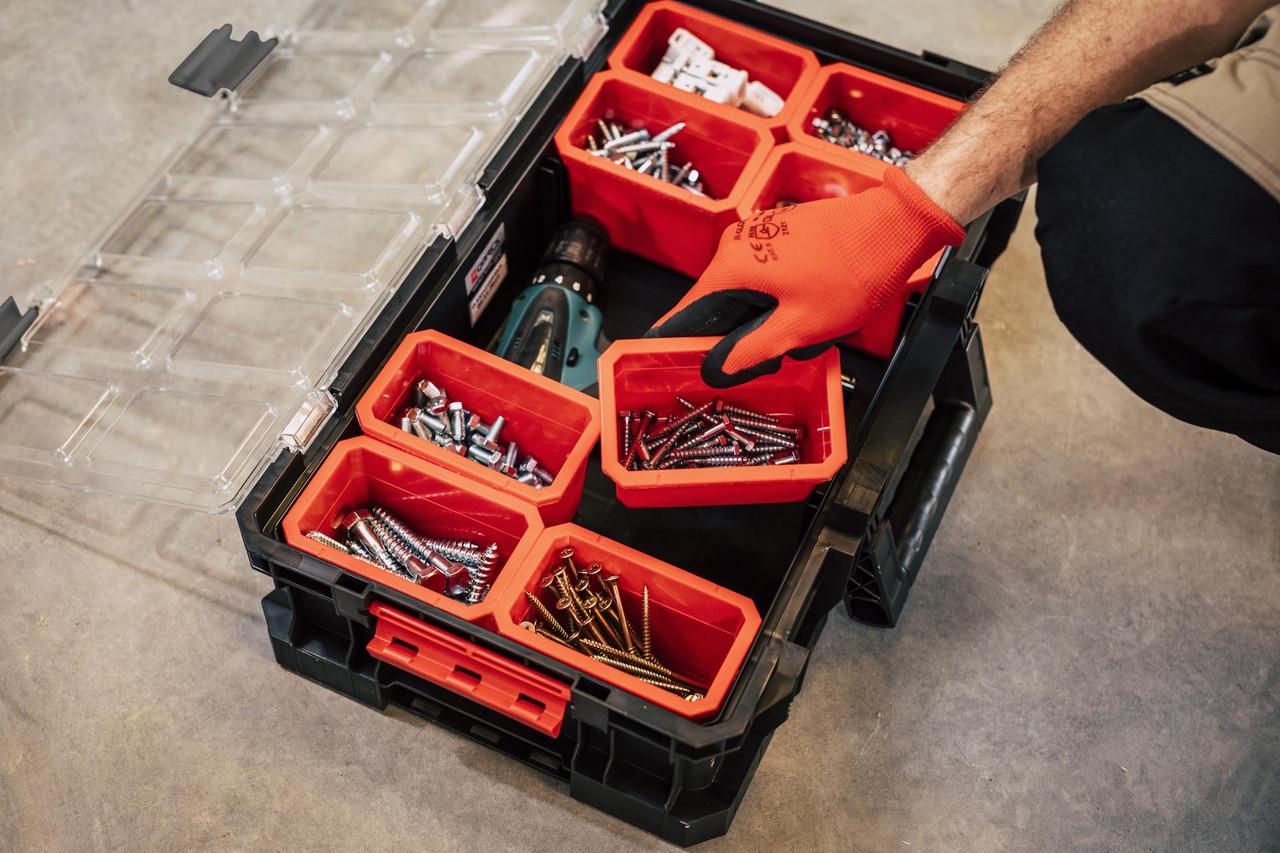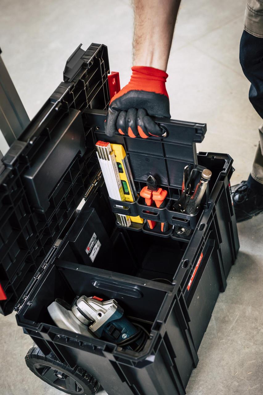Ящик для инструментов оснащен двумя регулируемыми отделениями – одним классическим и другим Мульти, что благодаря различным держателям для ручного инструмента позволяет легко поддерживать порядок внутри сундука. Кроме того, съемный отсек Multi можно использовать как автономный держатель для инструментов.