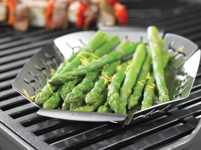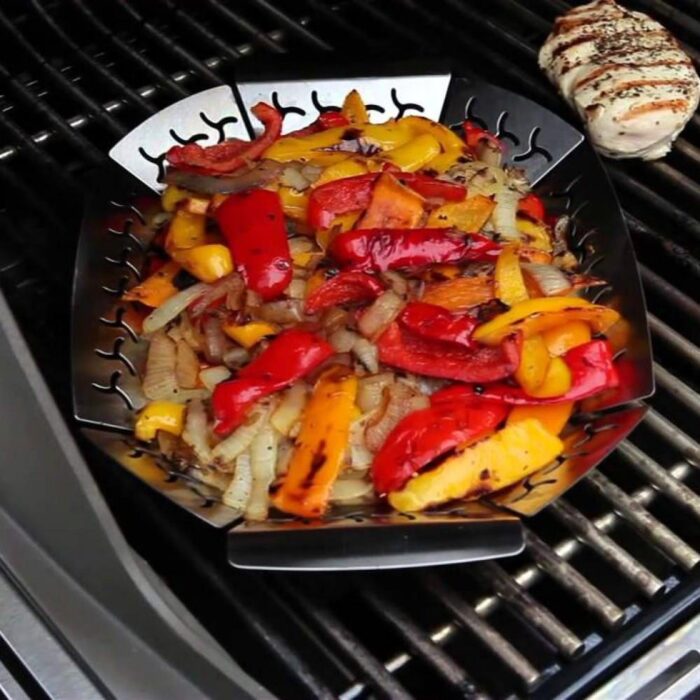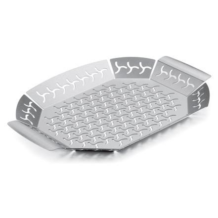 Перфорированный овальный противень предназначен для приготовления блюд из мяса, птицы, рыбы и овощей, где присутствуют мелкие кусочки. Блюда получаются сочными и ароматными, поскольку жар и дым проходят сквозь отверстия. Противень не подвержен деформации, выполнен из нержавеющей стали, легко моется. Можно использовать как на гриле, так и на кухне.