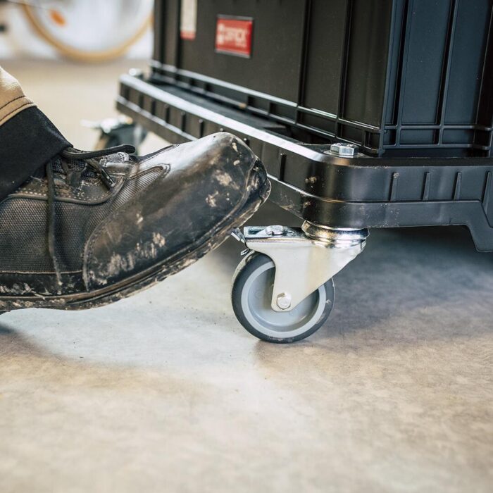 Большие колеса с резиновым покрытием, закрепленные на металлической оси, позволяют преодолевать разнообразные препятствия, такие как лестницы, подъездные пути или вязкий грунт.