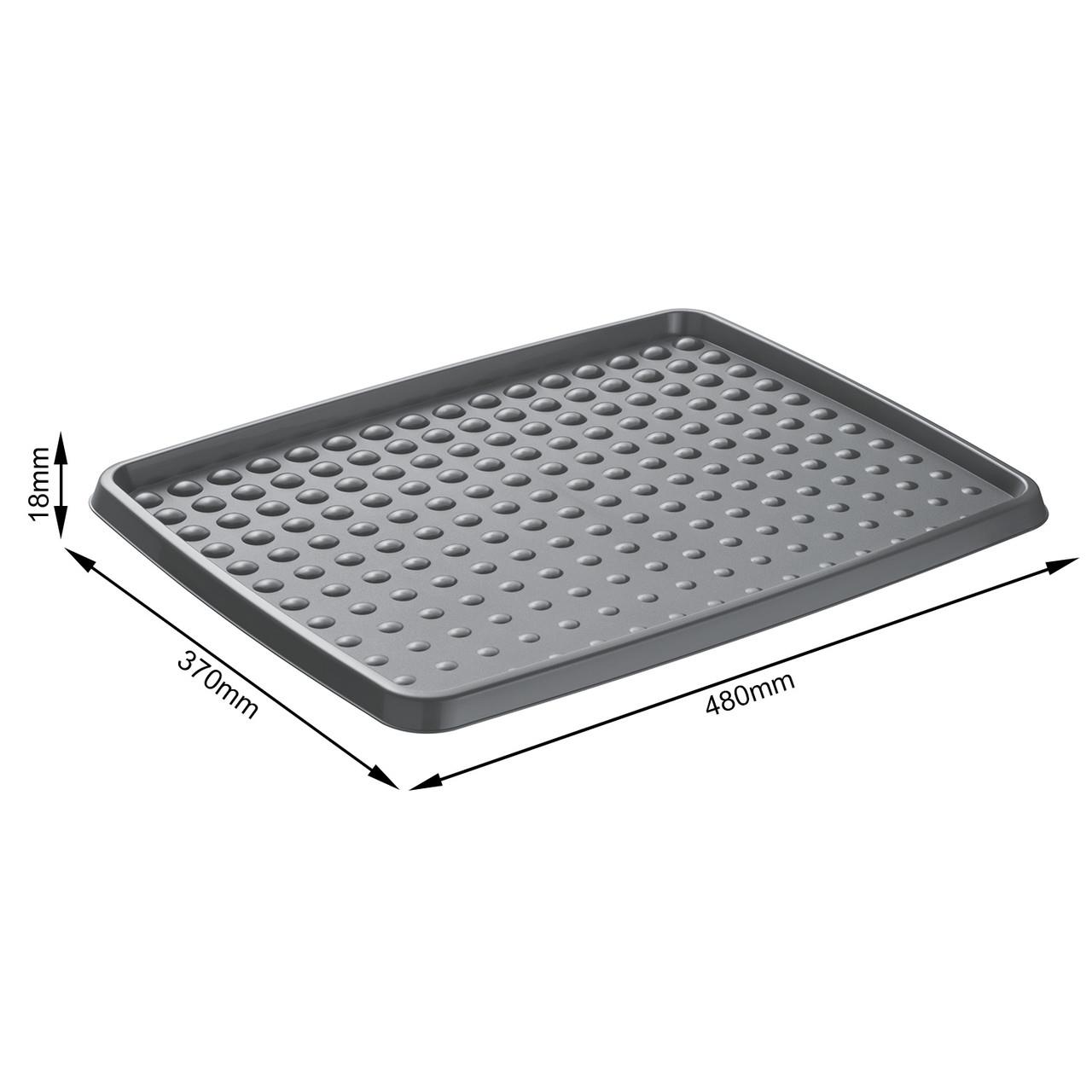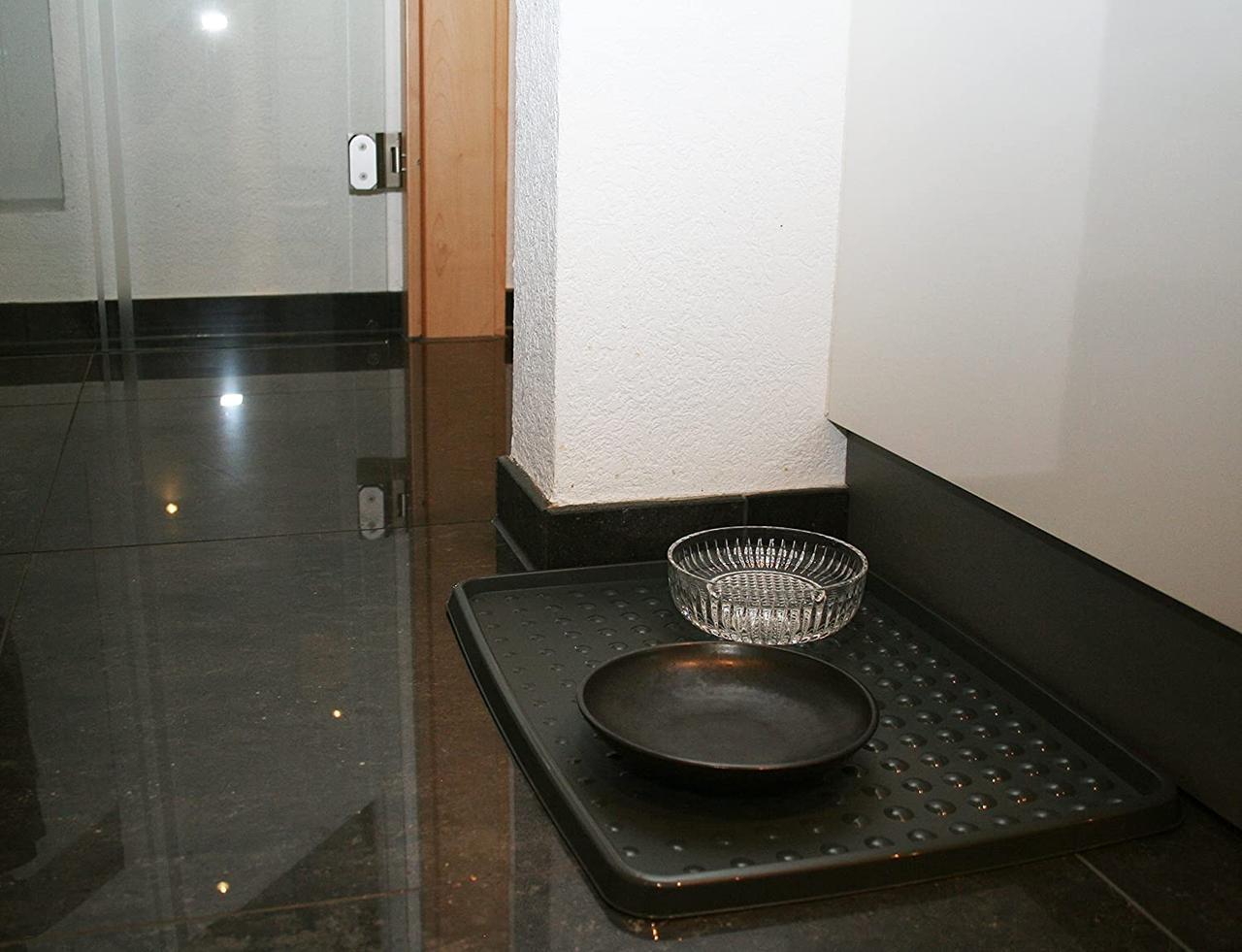 Таким образом, подставка для ног остается чистой даже в плохую погоду. Особенно зимой обувь оптимально ставится на лоток для обуви, так как приподнятый край предотвращает попадание росы с обуви на ногу.