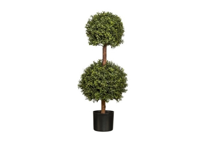 Потрясающий реалистичный самшит, состоящий из двух сфер, гармонично будет смотреться в жилом помещении, в офисе или на улице. Необычная форма станет интересным акцентом и украсит любое место. Не требует ухода и круглый год выглядит красиво и насыщенно, листья выполнены точно и правдоподобно.