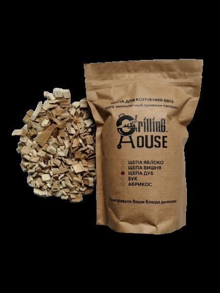 Щепа для копчения Grilling House расфасована в водонепроницаемый пакет, оборудованный зип-локом для удобного многоразового использования.