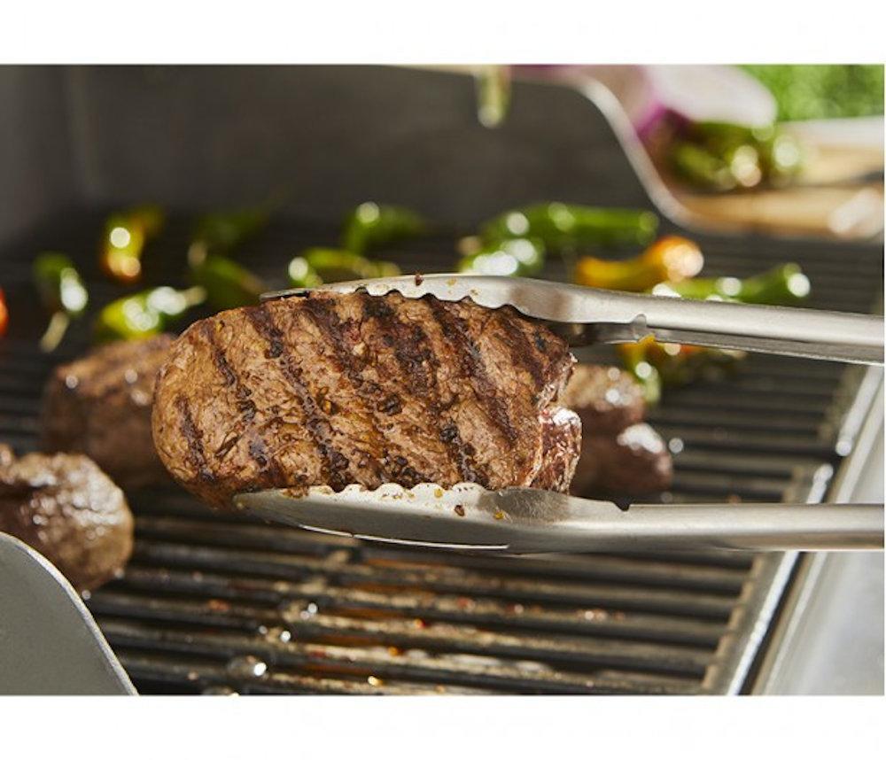 Благодаря плоским краям удобно поддевать, поднимать и переворачивать щипцами нежные продукты, например овощи и рыбу, а точный захват позволяет с легкостью перемещать даже увесистые ленты ребрышек.