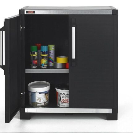 Универсальный двухдверный шкаф с полками для хранения инструментов и других предметов быта.