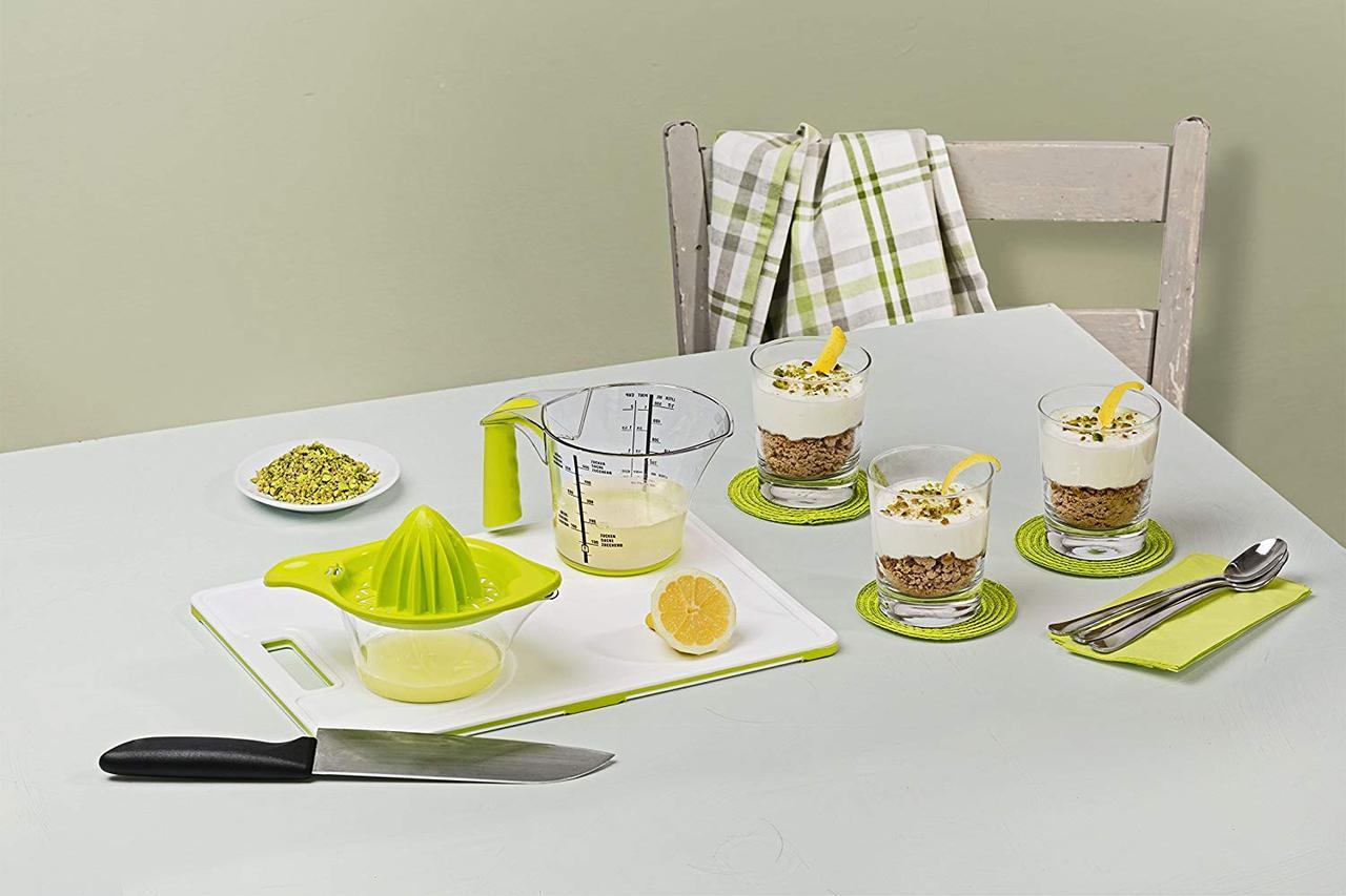 Пресс для цитрусовых ONDA изготовлен из пищевого пластика, не содержащего загрязняющих веществ и бисфенола-А, который чрезвычайно долговечен и прост в уходе — после использования устройство можно легко мыть в посудомоечной машине. Прозрачная часть снабжена мерной шкалой и имеет емкость 0,4 литра — так она впитывает сок примерно двух крупных апельсинов. Используйте практичный пресс для цитрусовых для ежедневного снабжения витаминами и для творческих блюд!