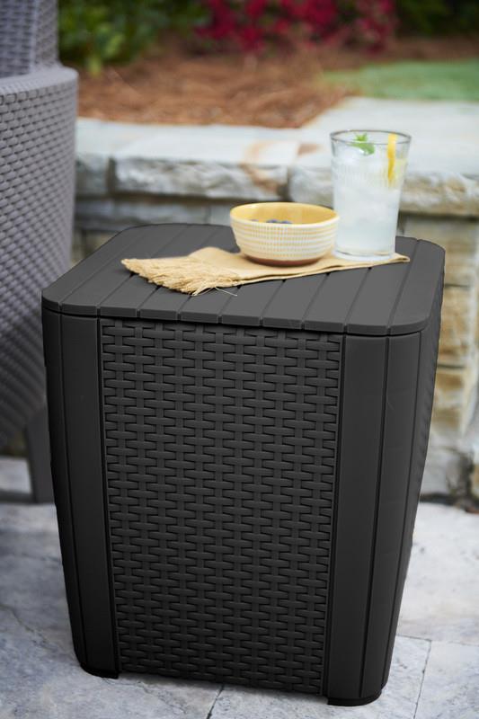 Кофейный столик Luzon для хранения на открытом воздухе – это универсальное решение для хранения, которое может одновременно дополнять кресла или служить дополнительным столиком, а также выполнять роль подставки для ног или дополнительного сиденья.
