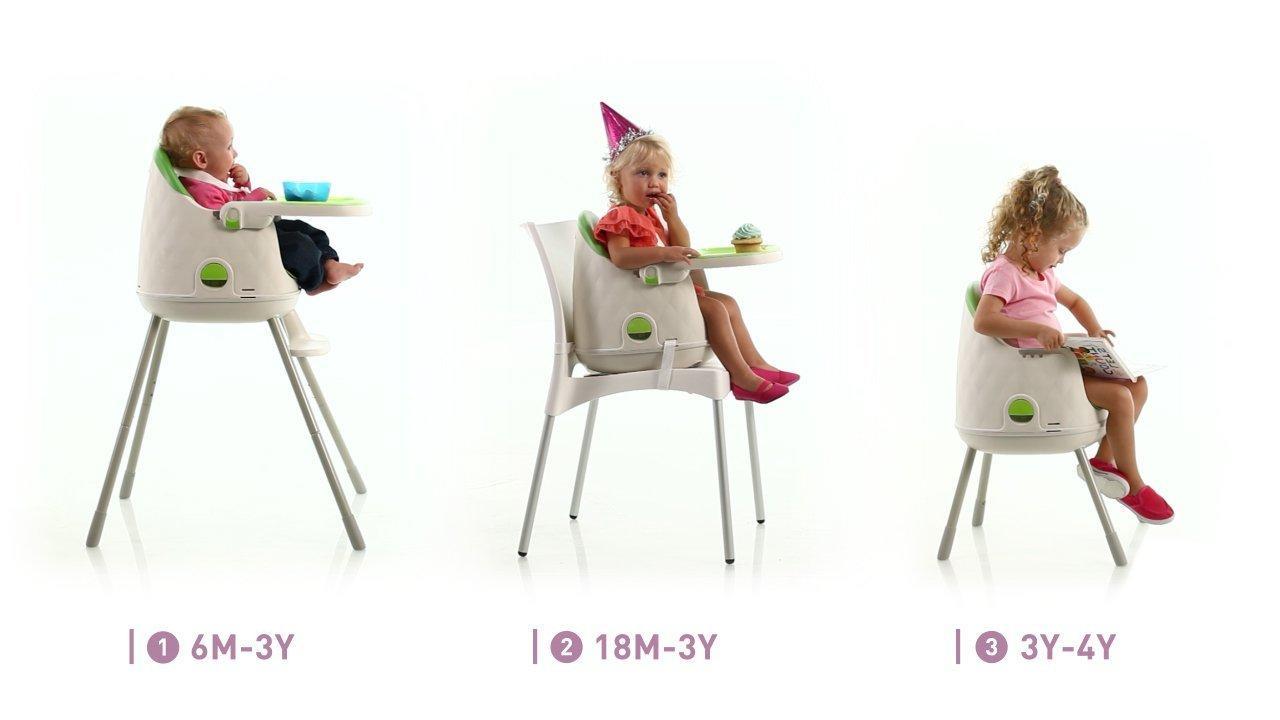 Стульчик , который растет вместе с ребенком! Уникальный дизайн стула сопровождает малыша на всех основных этапах развития и разработан так, чтобы функционировать в качестве высокого стульчика для кормления , вспомогательного стула-бустера и самостоятельного кресла.
