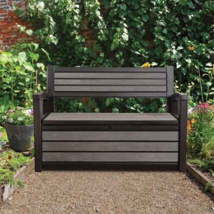 Превосходный сундук для подушек и садовых аксессуаров. Крепкий и прочный ящик. Полностью устойчив к погодным условиям и ультрафиолетовому излучению. Ящик изготовлен из пластика, поэтому он не нуждается в уходе. Встроенные ручки и ролики упрощают перемещение. Легкий и быстрый (5 минут) монтаж – без помощи инструментов. Закрывается на замок (замок не прилагается). Красивое ротанговое плетение. Эстетичный вид – хорошая цена.