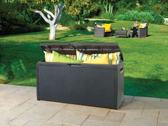 Благодаря этим преимуществам, такие предметы как садовые подушки, покрывало, одеяло или необходимые садовые инструменты найдут свое место в практически организованном пространстве. Механизм, облегчающий открытие крышки, является дополнительным полезным преимуществом продукта. Благодаря своей прочности, сундук также может быть использован в качестве места для сиденья для 2-х человек.