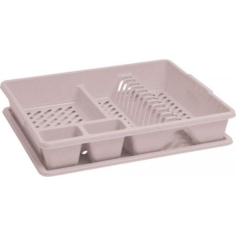 Практичная сушилка для посуды Curver цвета саванна. В комплект входит поддон для стекающей воды и для удобного наливания. Сушилка обеспечивает достаточно места для вымытых тарелок, кружек и столовых приборов.