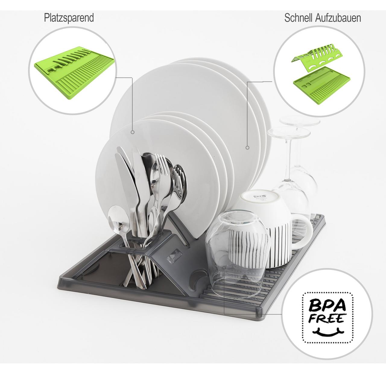Современный складной поддон Rotho SpaceWonder из высококачественного материала. Универсальный размер и возможность складывания и раскладывания сушилки позволяет экономить место на кухне, а когда сушилка не используется – ее можно спрятать в ящик или шкаф. Простая конструкция позволяет размещать на нем тарелки, чашки, стаканы, миски и столовые приборы. Он подойдет для любой кухни, но также будет отличным предложением для дачи или кемпинга. Швейцарская компания Rotho обеспечивает отличное качество материалов и изготовления, а значит, долгую эксплуатацию.
