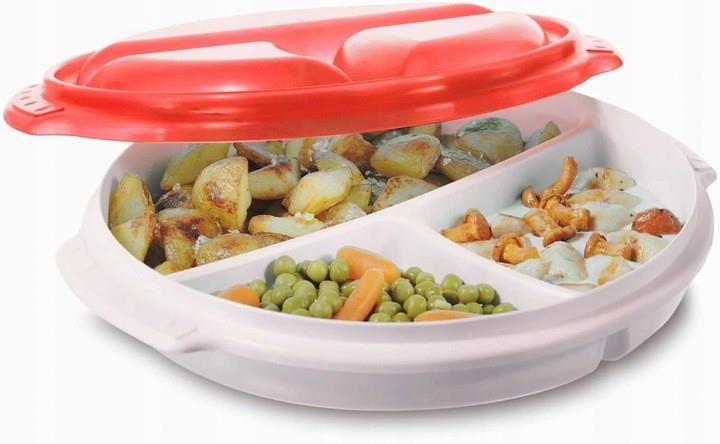 Тарелка для СВЧ с крышкой Clever 0,75 л, белый/красный