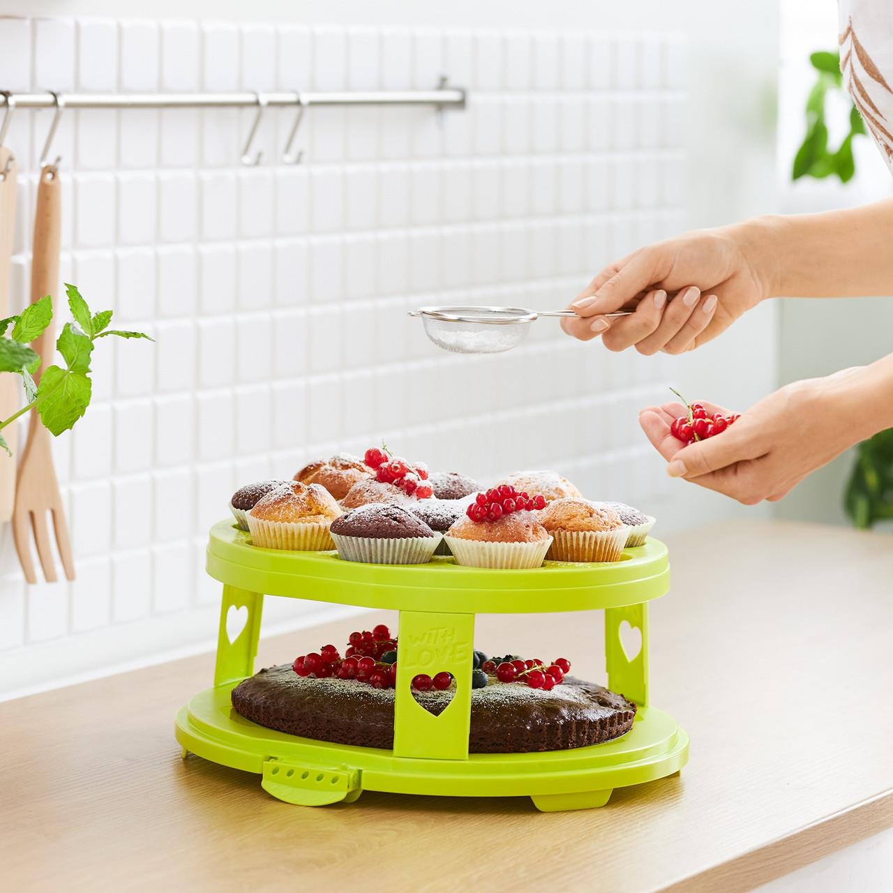 Подставка для пирожных ярусная, стойка для кексов, мороженного, тортница с крышкой для маффинов пластиковая, поднос для подачи пирожных, подставка для десертов Rotho FRESH XL,лайм