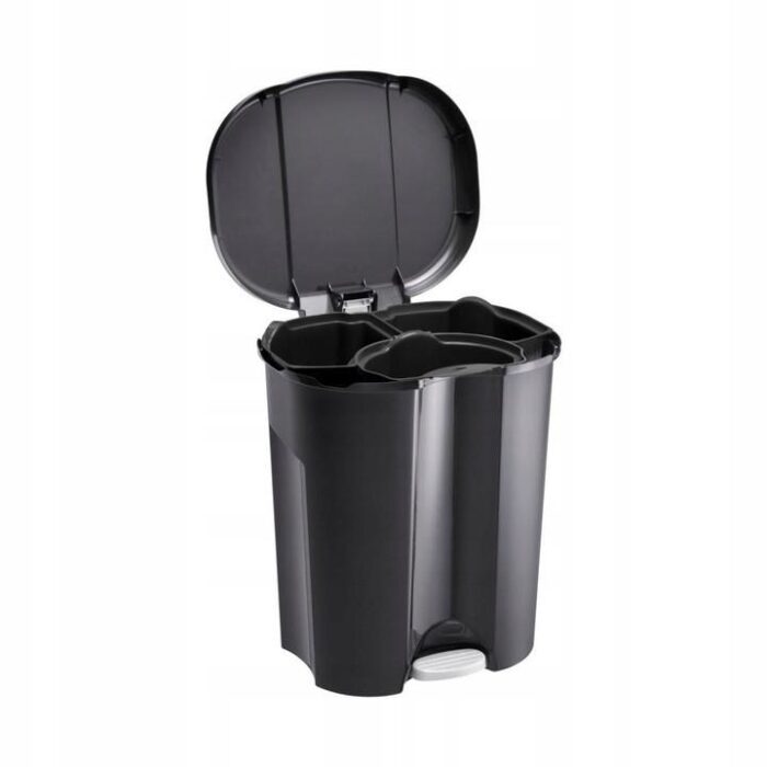 Система сортировки мусора с откидной крышкой. Практичная система сортировки отходов TRIO с тремя съемными внутренними баками — удобное и гигиеничное решение для каждой кухни. Он имеет практичную педаль и нескользящие резиновые ножки . С корзиной для мусора TRIO раздельная утилизация становится детской игрой: внутренние корзины трех цветов позволяют легко распределять каждый мусор по соответствующему контейнеру.. Таким образом, вы можете легко отделить бытовые отходы от вторсырья и органических отходов.