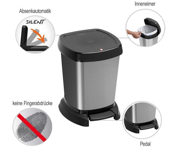 Урна для мусора с педалью Paso 40 л, черный/металлик