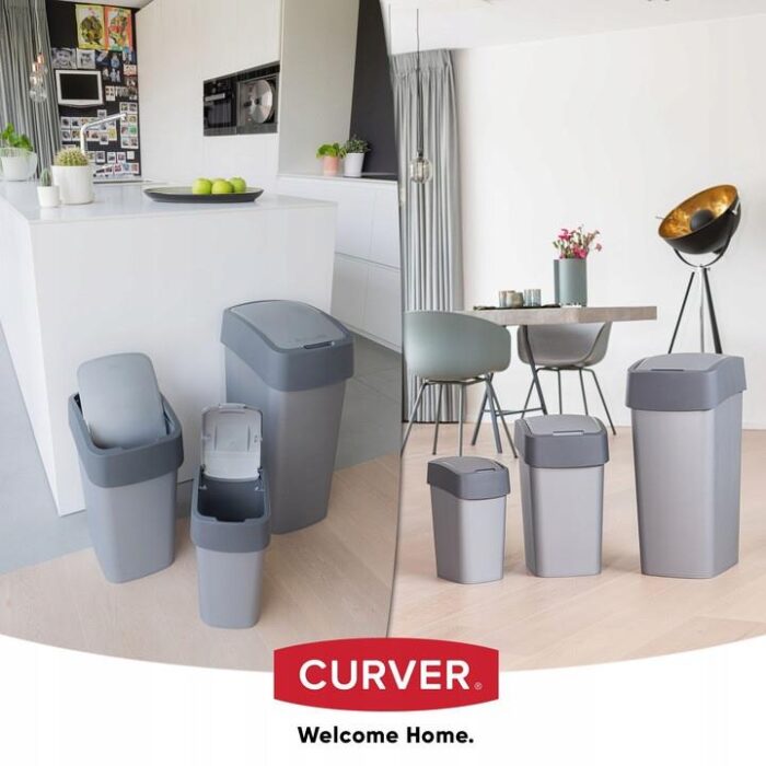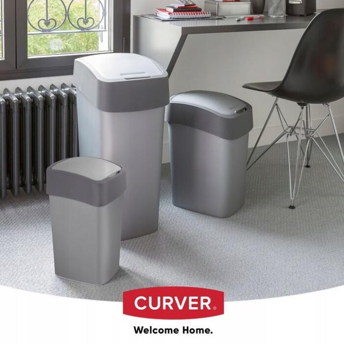 Практичная корзина для мусора Roll Top Curver квадратной формы. Открывая крышку, сдвинув ее вверх, крышку можно полностью снять при смене мешка для мусора. Подходит для кухни, ванной или офиса.