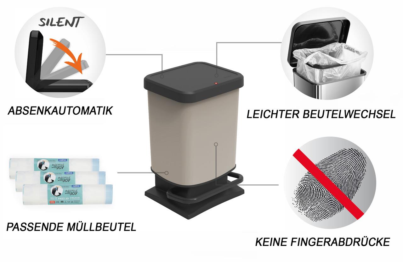 Гигиеничная утилизация ежедневных агрессивных отходов может быть такой простой! Благодаря плотно прилегающему стороннему PASO утилизация отходов без запаха проходит без особых усилий.
