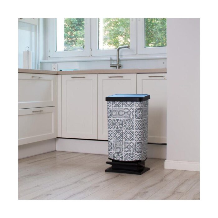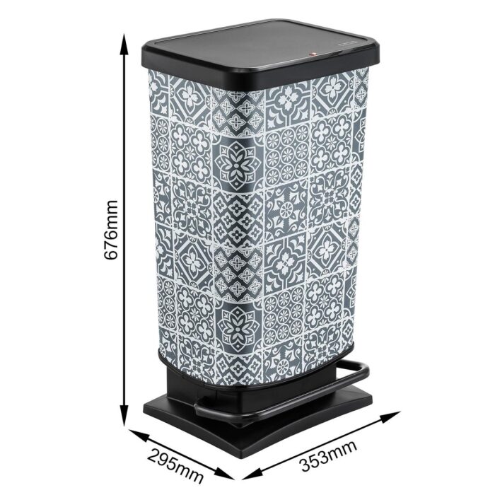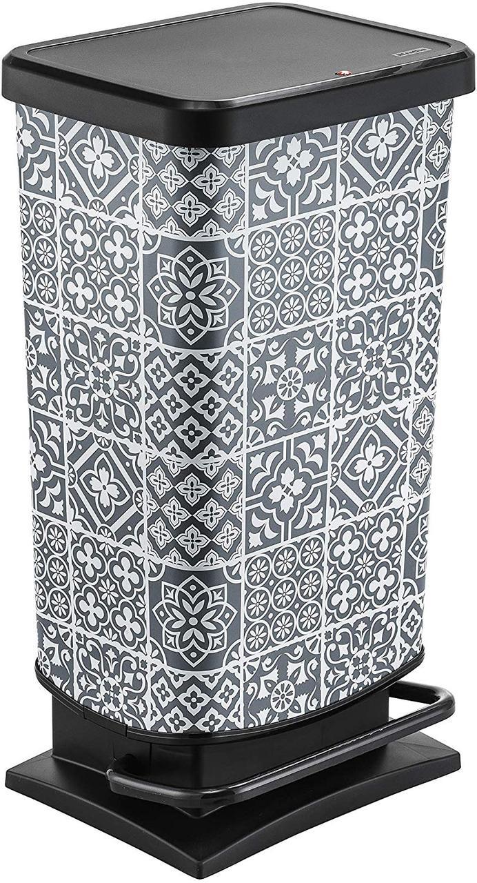 Урна для мусора с педалью Paso 40 л, черный/”tiles”