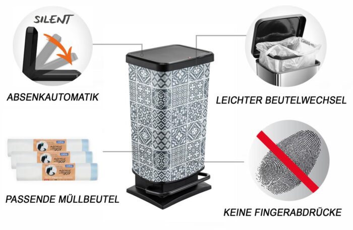 ГлавнаяКонтейнеры для мусораМусорные ведра для дома Урна для мусора с педалью Paso 40 л, черный/”tiles”