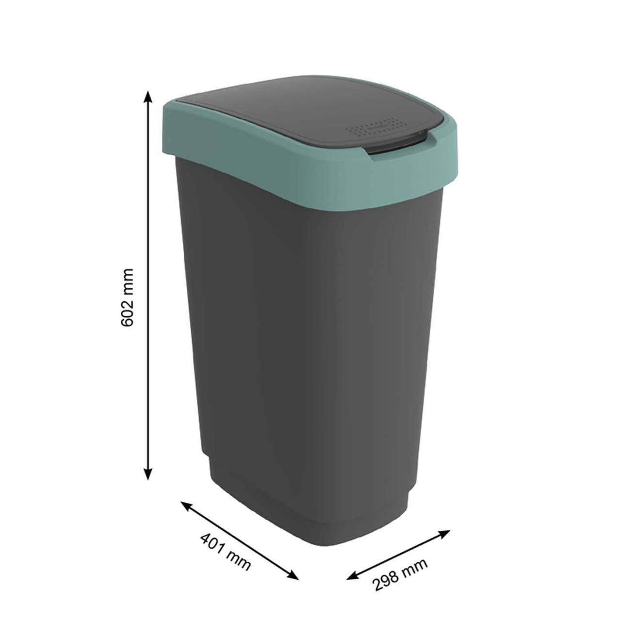 Мусорное ведро Twist от Rotho – это удобный и вместительный бак с крышкой. Ведро для мусора имеет вместительность в 10 литров и идеально подойдет для небольших помещений, где важно сэкономить место. Благодаря своим размерам пластиковая урна подходит для размещения в ванной, детской комнате, на кухне или офисе. Мусорный бак имеет откидную крышку, которая открывается двумя способами. Два способа открывания мусорного ведра путем наклона крышки вверх или маятниковым способом на центральной петле. Модель ведра для мусора Twist также имеет специальный ободок для фиксации мешка. Защитная полоса доступна в разных цветах: серый, зеленый, красный, синий и бирюзовый. Благодаря этому сортировка отходов и вторсырья станет еще проще. Широкая полоса крышки закрывает мешок для мусора, выступающий из контейнера, и дополнительно препятствует выходу неприятных запахов изнутри. В нашем магазине Вы найдете пластиковые урны разнообразных объемов и расцветок.