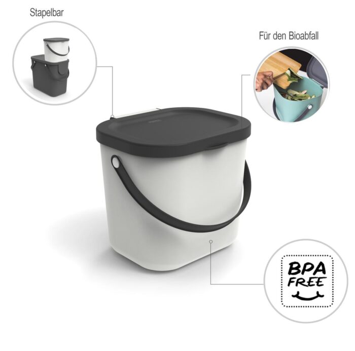 Контейнер с крышкой дает возможность собирать отходы там, где они падают: на кухне. Благодаря красивому дизайну его также можно разместить на столешнице, и он не может издавать неприятных запахов при закрытой крышке. Пластиковые ведра доступны в различных цветах, а также лучше всего подходят в качестве контейнеров для столовых отходов, для сбора пустых кофейных капсул или для хранения моющего средства, жидкости для мытья посуды и т. д. Их легко мыть водой и моющим средством для посуды.