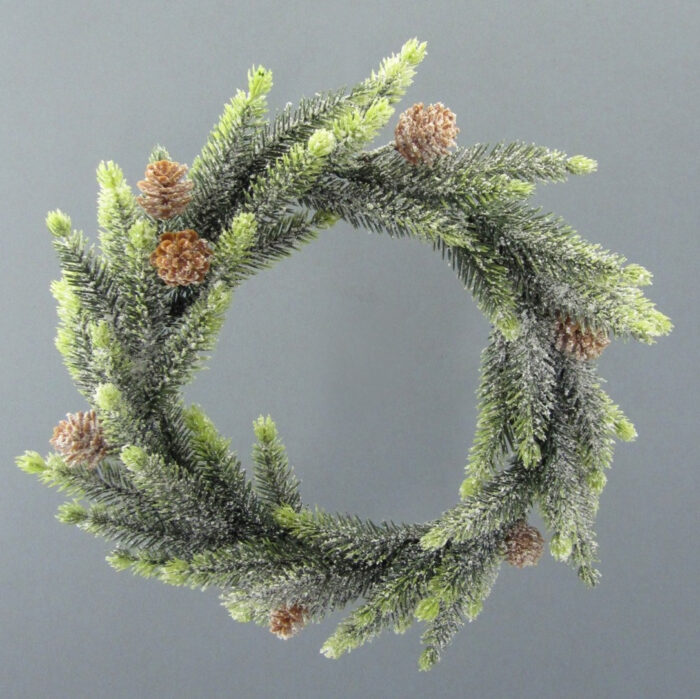 Красивый венок из елочных заснеженных веток создаст праздничное настроение. Детально выполненные веточки , а также декор шишками придает украшению естественный вид. Можно повесить на дверь или использовать в качестве декора для подсвечников.