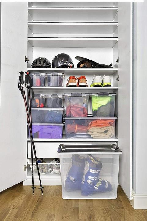 Ящик COMPACT рекомендуется для хранения всевозможных предметов домашнего обихода, таких как зимняя одежда и одеяла. Спортивная одежда и аксессуары, такие как гантели, очки для плавания или теннисные мячи. При необходимости их можно быстро найти и поддерживать в чистоте. Коробка не только штабелируемая, но и чрезвычайно прочная, что делает ее особенно практичным помощником при хранении.