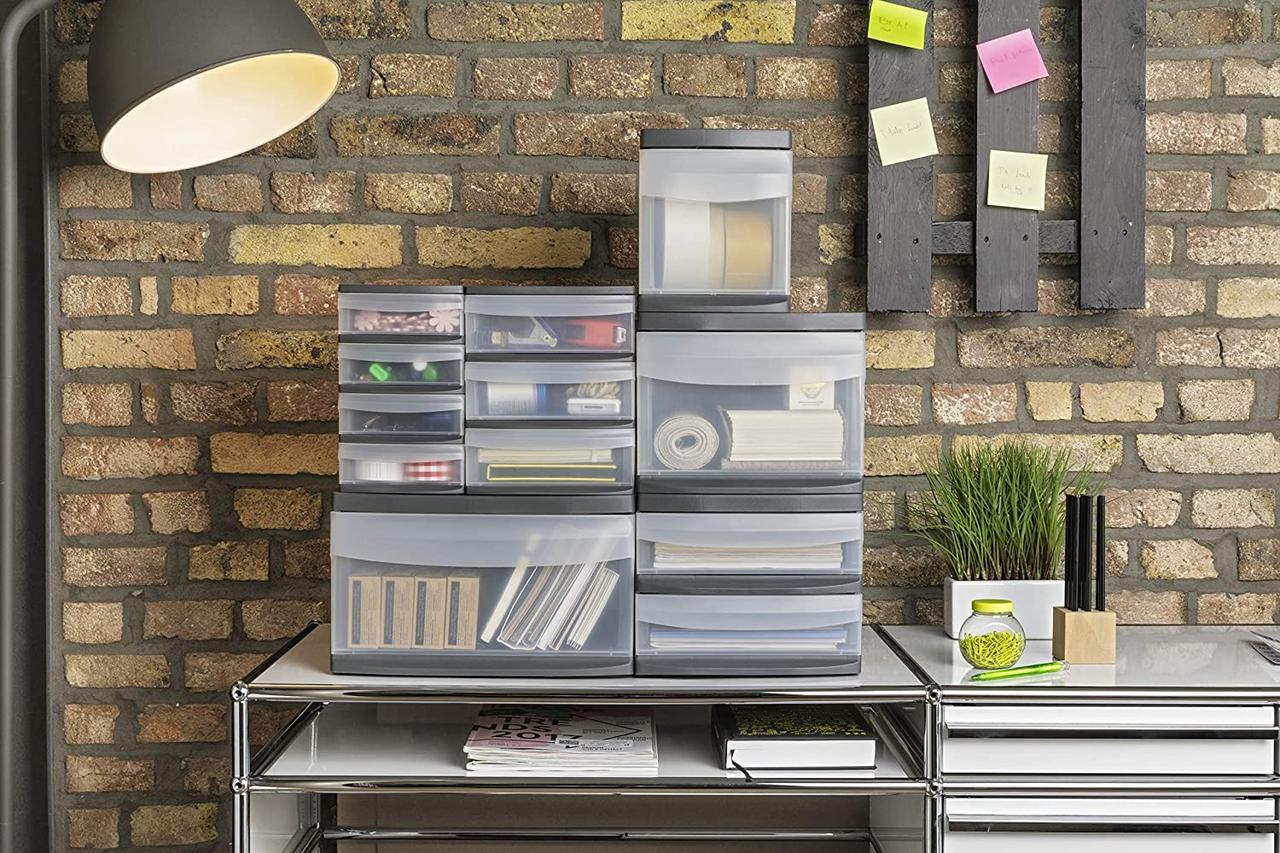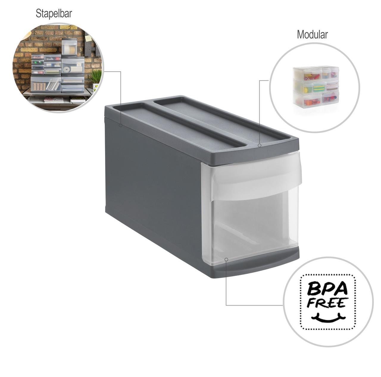 Ящик с выдвижным ящиком является частью модульной системы организации SYSTEMIX и может сочетаться со всеми продуктами этой линии. Различные размеры контейнеров позволяют оптимально использовать пространство. Благодаря роликовой направляющей все ящики выдвигаются плавно и бесшумно, даже если они заполнены тяжелыми предметами. Стопоры ящика предотвращают его случайное выдвижение или выпадение, а массивные резиновые ножки на полу обеспечивают необходимую устойчивость и предотвращают появление царапин на поверхности.