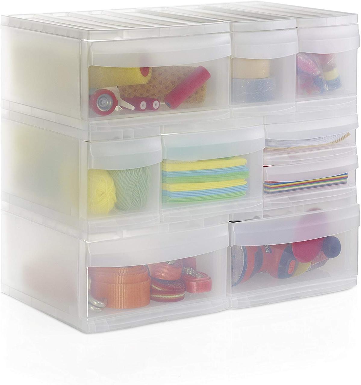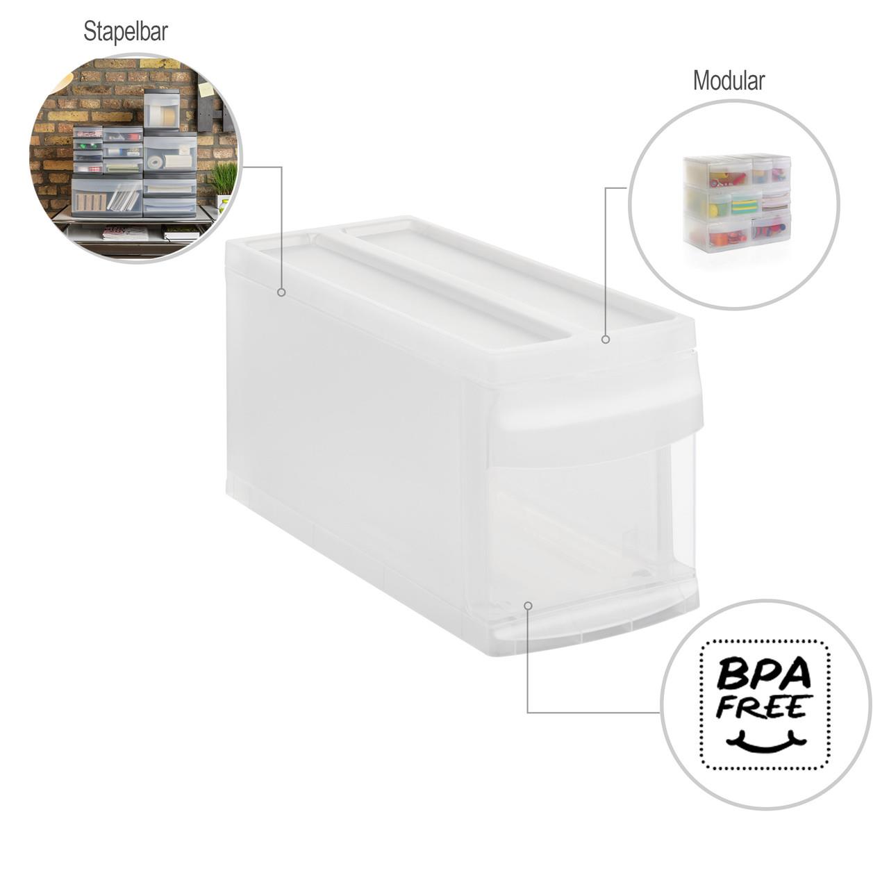 Штабелируемый ящик с 1 ящиком – подходит для столов, полок, ванных комнат и кухонь.