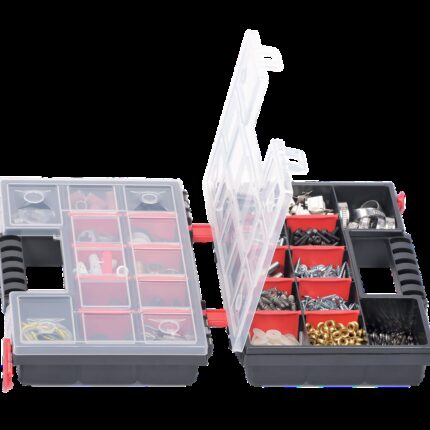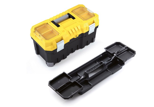 Ящик для инструментов Titan оснащен внутренним вкладышем, практичными внешними органайзерами, встроенными в крышку, и резиновыми углами в основании. Дополнительным преимуществом является двойной усиленный фиксатор из алюминия. Грузоподъемность до 15 кг. Отличное решение для сортировки мелочей и инструментов в кладовой, гараже, мастерской и пр.