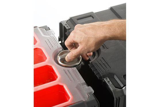 Прозрачная крышка обеспечивает отличную видимость сгруппированных инструментов и аксессуаров. Внутренние контейнеры легко вынимаются, что значительно облегчает доступ к инструментам и небольшим аксессуарам, таким как винты, гвозди и другие крепежные детали. Ящик изготовлен из высококачественных материалов, гарантирующих долговременное использование и устойчивость к механическим повреждениям.