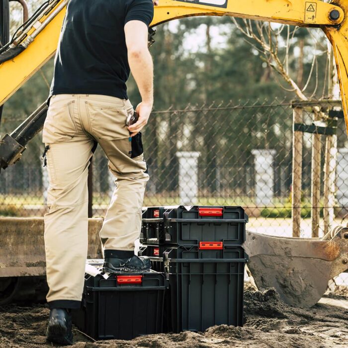 Ручки, застежки и коннектор для модульного соединения коробок друг с другом изготовлены из сверхпрочного пластика, которые обеспечивают максимальную прочность даже в самых тяжелых условиях эксплуатации. Совместим с любым ящиком, входящим в серию System ONE.