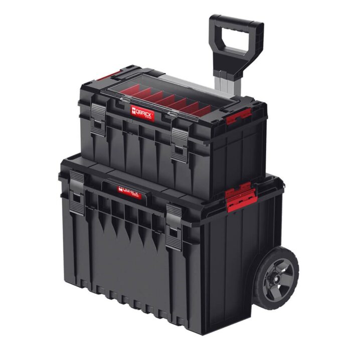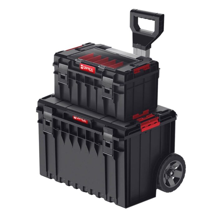 Большой ящик для инструментов на колесах обеспечивает отличную мобильность модульных систем Qbrick. Два колеса с резиновым покрытием, установленные на металлической оси, позволяют безопасно транспортировать даже большие наборы.