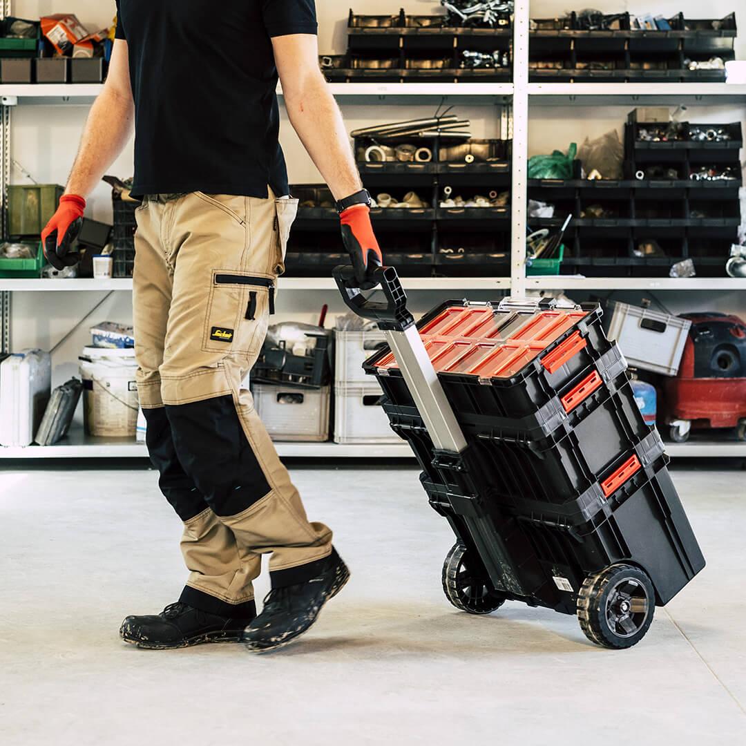 Модульный ящик для инструментов, который является мобильной основой для создания персонализированных наборов серии QBRICK TWO. Надёжная телескопическая ручка, металлическая ось, большие колеса с резиновым покрытием, гарантируют долговечность и отличную маневренность.