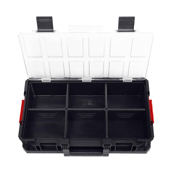 Модульный органайзер для небольших аксессуаров. Крышка из поликарбоната, полиамидные защелки и прочная ручка обеспечивают безопасность и комфорт. Органайзер оснащен 5 делителями.