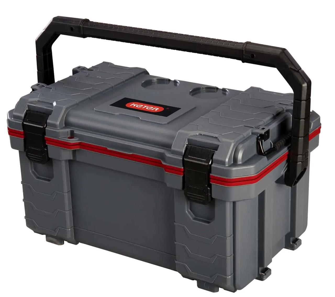 Термобокс Keter Gear Cooler сохраняет температуру на 48 часов. Совместим с другими ящиками серии Gear с возможностью модульной компоновки. Термобокс оснащен усиленной застежкой в виде зажимных фиксаторов, а также эргономичной ручкой, что обеспечивает безопасную транспортировку ящика.